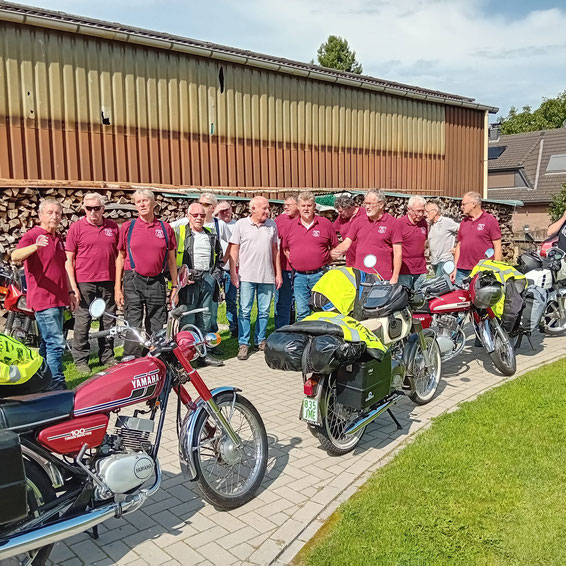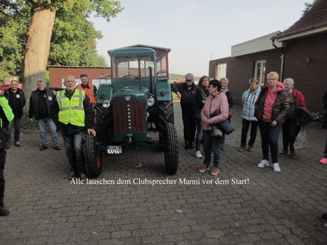 Mit über 38 Personen machten sich die Oldtimerfreunde, vom Gasthof Bensen am See, auf den Weg zur letzten gemeimsamen Ausfahrt der Jahres- Saison. Das Wetter spielte mit, denn es gab an diesem Morgen keinen Regen sondern strahlend blauen Himmel und SONNE satt ab dem Mittag wurden es 20 Grad. Die Mopedgruppe (15), Oldtimertraktoren (9) und Autos (2) führte die Mitfahrer nach Drangstedt. Elmlohe, Bramel, Laven, Wehden. Debstedt, Hymendorf, Sievern, Langen, Imsum und Wremen nach Dorum zum Restaurant „ Wurster Hof“, wo es einen ausgiebigen Mittagstisch gab. Bei der Pipinsburg trafen die Mopedfahrer und Traktorfahrer zusammen um eine gemeinsame Pause zu machen. Clubsprecher Manfred bedankte sich im Namen aller Anwesenden für die gut ausgearbeitete Tour von Albert und Manfred. Bei der über drei Stunden langen Zweiradtour wurden ca. 100 Kilometer und den Traktoren und Autos annähernd 50 Kilometer gefahren. Fotos und Text W.J.