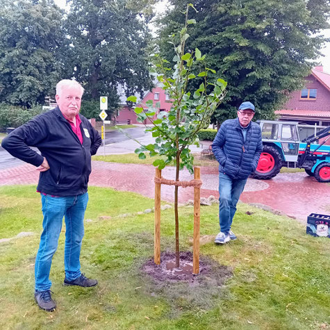 Oldtimerfreunde haben eine Winterlinde an der Kirche gepflanzt